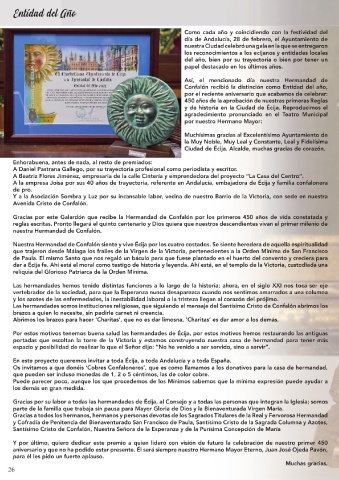 Gracias por su labor a todas las hermandades de Écija, al Consejo y a todas las personas que integran la Iglesia; somos Agradecer al Grupo Joven de la Hermandad Sacramental de San Gil en nombre de mi Junta