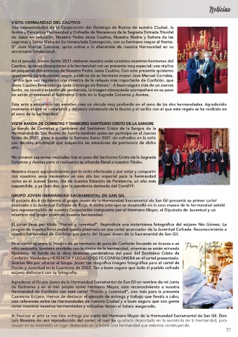 por nuestro Hermano Mayor: Jesús Cautivo lleva consigo cada Domingo de Ramos”. A buen seguro más de un Jueves