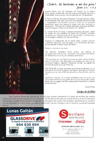 LOS OFICIOS, no sólo consisten en el lavatorio de pies, en un