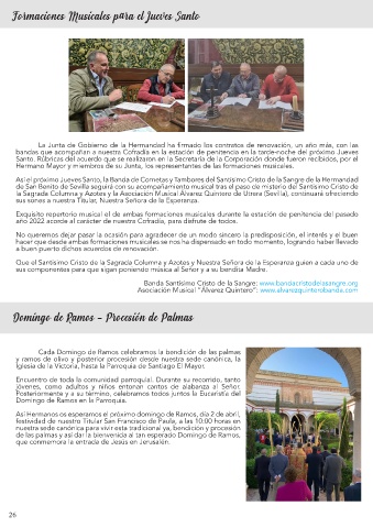 la Sagrada Columna y Azotes y la Asociación Musical Álvarez Quintero de Utrera (Sevilla), continuará ofreciendo