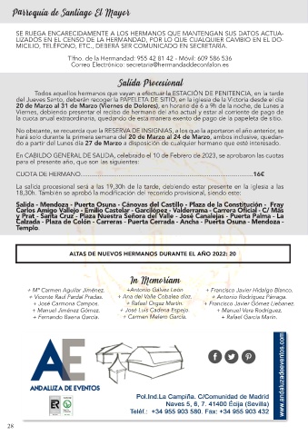 Tlfno. de la Hermandad: 955 42 81 42 - Móvil: 609 586 536