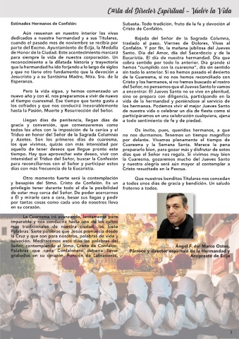 3: Carta del Director Espiritual 4: Carta del Hermano Mayor 5: Actos Medalla de Honor 6: 450 Aniver- Otro momento fuerte será la contemplación Que nuestros benditos Titulares nos concedan